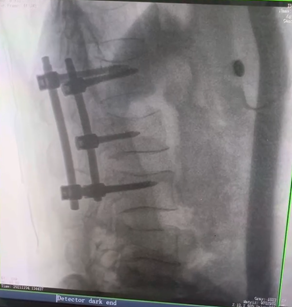 例如治療先天性脊柱側(cè)后凸畸形,由于脊柱自身復(fù)雜的解剖結(jié)構(gòu)限制,使得脊柱外科手術(shù)對(duì)于精確度有著較高要求。以往我們只能采用傳統(tǒng)的正側(cè)位圖像來判斷螺釘置入的位置,現(xiàn)在三維C形臂特有的類CT斷層成像,使得治療過程可視化,立體化,在術(shù)中非常直觀地判斷螺釘植入的準(zhǔn)確度。可有效引導(dǎo)術(shù)者植入后路螺釘并切除半錐體。同時(shí)可以在術(shù)中實(shí)時(shí)驗(yàn)證手術(shù)效果。有效地縮短了手術(shù)時(shí)間,降低手術(shù)風(fēng)險(xiǎn),避免了不必要的術(shù)后翻修手術(shù)。